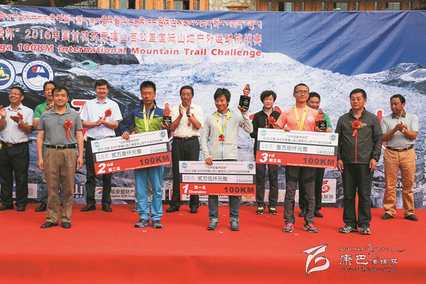 27日凌晨5时,参赛选手从康定情歌广场出发后,运动员们不畏艰险,你追我赶,各显神通,拼尽全力,最终完成了50公里和100公里的赛程。经过激烈的角逐,实力强劲的运艳桥以13小时零48秒的成绩将男子组100公里冠军奖牌收入囊中,姚妙以14小时39分32秒的成绩获得女子组100公里冠军;50公里男子组、女子组冠军分别被明定邦和牛丽华摘取,成绩分别是5小时38分12秒和6小时58分38秒。闭幕式现场,赛事组委会为获得各项赛事前三名的选手颁发了奖金、奖杯与奖牌。
